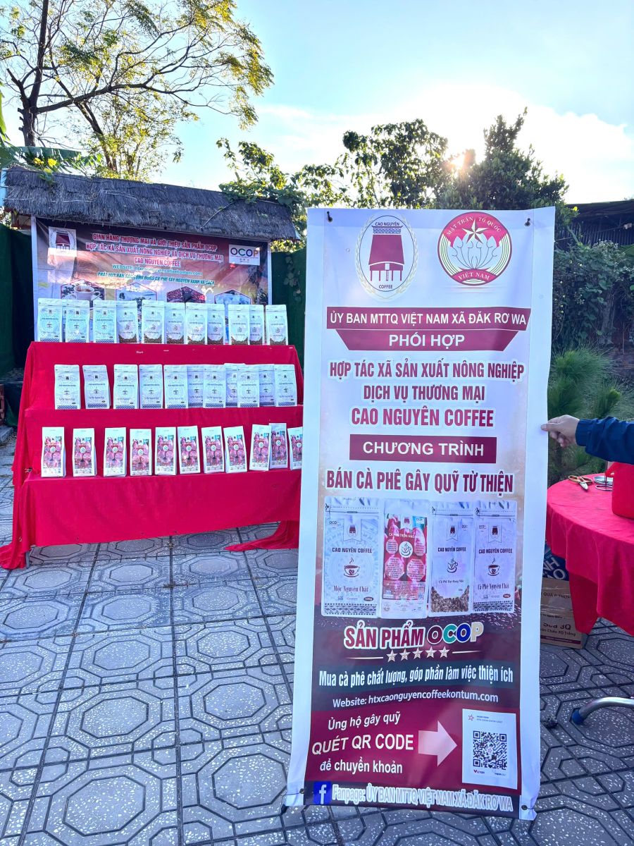 Thực hiện các hoạt động an sinh xã hội, phát huy tinh thần tương thân tương ái trong cộng đồng, Ủy ban MTTQ Việt Nam xã Đắk Rơ Wa đã phối hợp với Hợp tác xã Sản xuất nông nghiệp Dịch vụ Thương mại Cao Nguyên Coffee tổ chức Chương trình bán cà phê gây quỹ từ thiện, đây cũng chính là các sản phẩm cà phê đạt chuẩn OCOP của địa phương.
